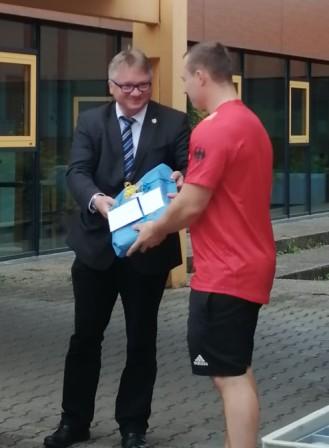 Nachdem Abteilungsleiter Thorsten Hauß alle Anwesenden mit launigen Worten willkommen geheißen hatte stellte der sportliche Leiter Manuel Noe speziell die Leistung und das Auftreten des zweimaligen Olympiateilnehmers in den Vordergrund. Er wünschte ihm weiterhin viel Freude und Erfolg bei seinem Sport und liebäugelte mit einer Wiederholung des Empfangs in drei Jahren.